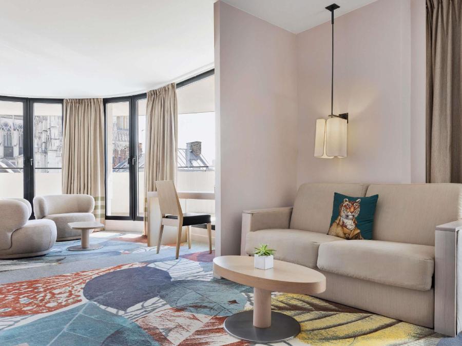 Das Hotel verfügt über 102 Zimmer, die in verschiedenen Kategorien angeboten werden, darunter sechs Suiten, die mehr Platz und einen atemberaubenden Blick auf das umliegende Kulturerbe bieten. Alle Zimmer sind schallisoliert, klimatisiert und lichtdurchflutet. In den großzügigsten Suiten öffnen große Fensterfronten und Balkone den Blick auf die monumentale Fassade der Kathedrale, ein seltenes Schauspiel – sowohl bei Tag als auch bei Nacht.