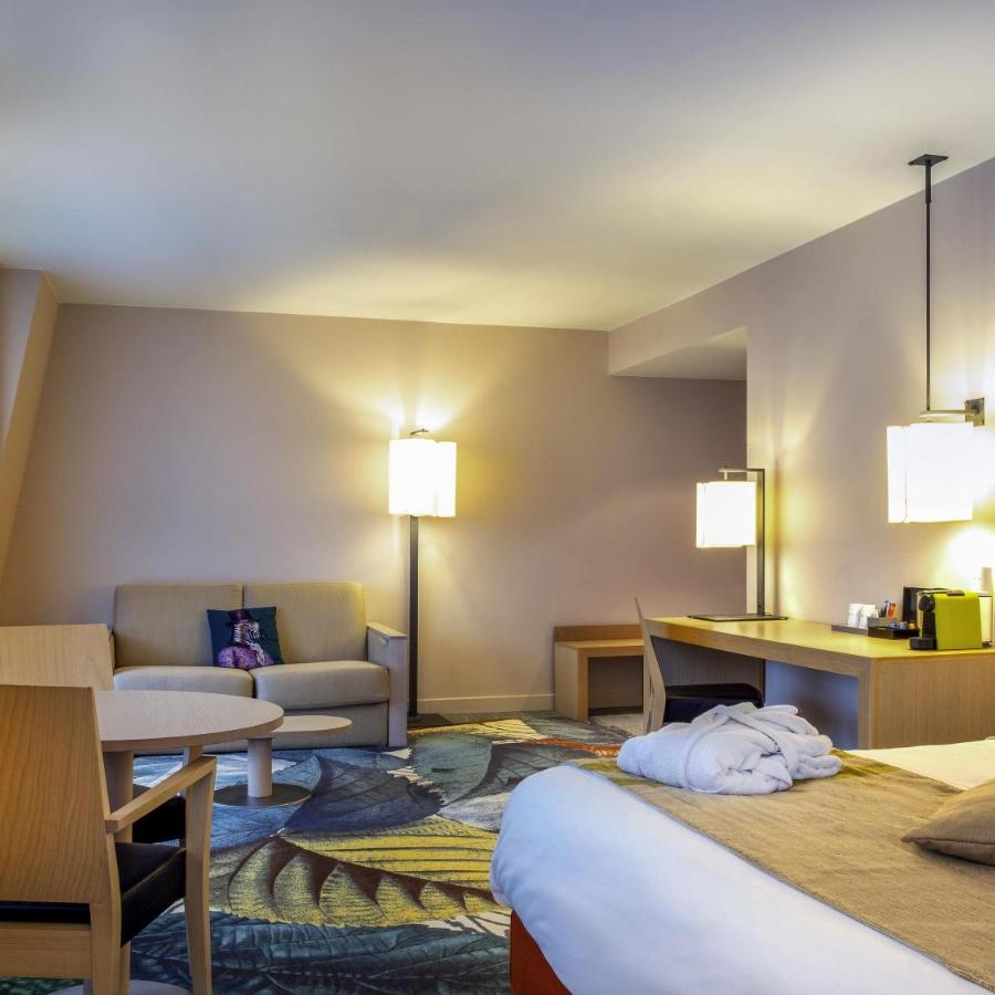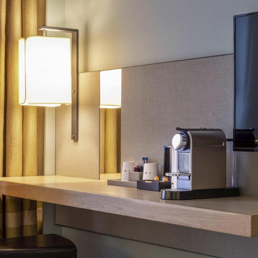 Das Innenambiente setzt auf moderne Linien, die durch warme Farben gemildert werden. Der Komfort der Betten, die Sorgfalt bei den Details und die Ruhe in den Zimmern tragen zu einem sofortigen Wohlgefühl bei. Ein Begrüßungstablett, eine Minibar, ein Fernseher mit internationalen Kanälen und Highspeed-WLAN gehören zu den inbegriffenen Leistungen.